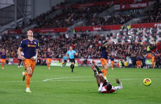接着,在第73分钟,丹-伯恩在向本方球门回追时,看似已经基本控制住布伦特福德一记长传过来的球。但瓦塔拉从身后对他进行骚扰,然后抢先一步触到了球,随后在纽卡防守球员的接触下倒地。